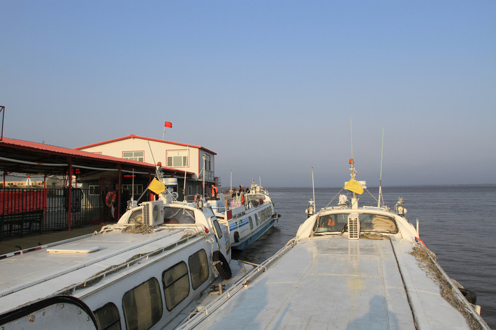 口岸禁止拍照,上到船上回身照了一张。