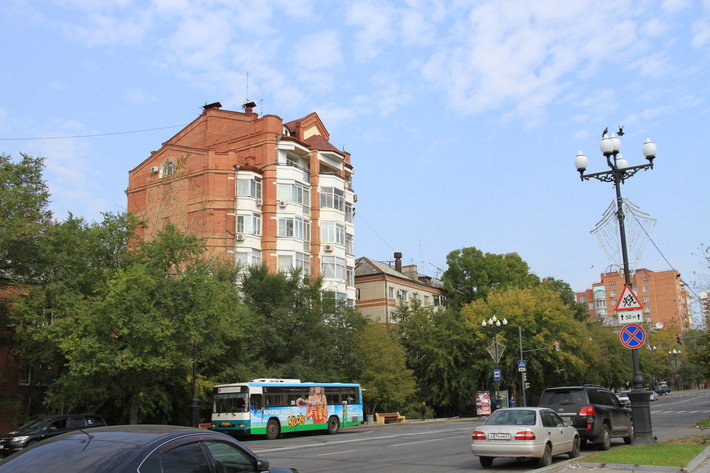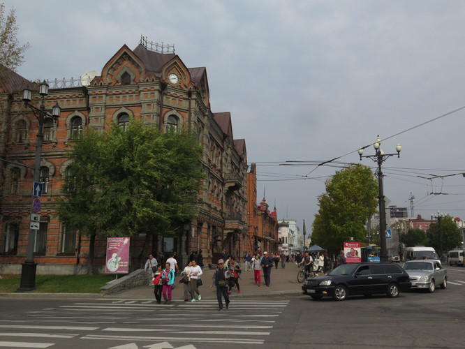 不远处是百年的历史建筑和穆拉维耶夫·阿穆尔斯基大街(导游告为:马克思大街),这条街是哈巴最繁华的街道,被称作哈巴的阿尔巴特大街。