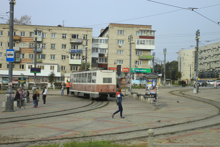 穆拉维耶夫·阿穆尔斯基大街另一端连接着列宁广场,它是哈巴罗夫斯克节假日举行重大集会的地方,阅兵式也在这里举行。 导游说列宁广场比红场面积大,周边种植着鲜花。广场上有大量的鸽子,吸引着游客喂食。