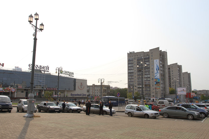 在哈巴罗夫斯克巡游的几日多次来到共青广场。
