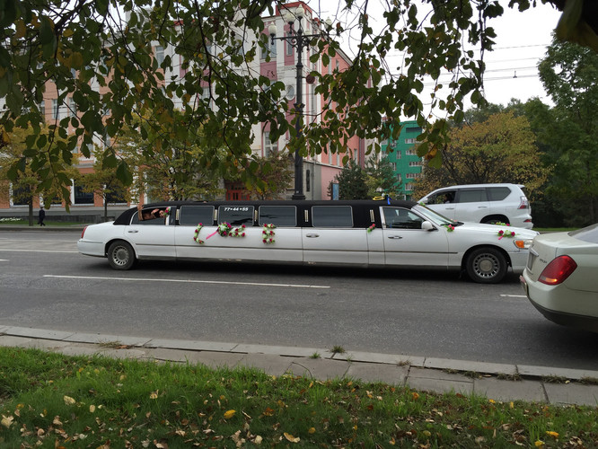 一辆加长的婚车驶过,车上的青年人向我们招手致意。