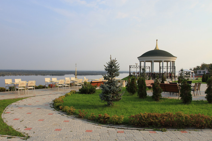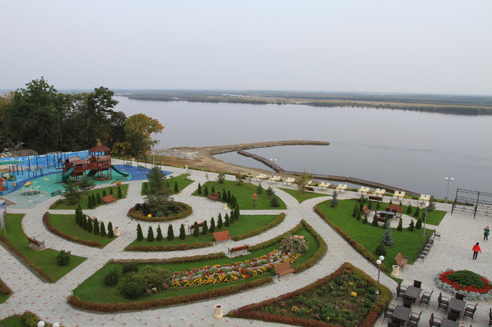 在穆拉维耶夫雕像旁边,有一个哈巴最高点的观景台,可俯瞰阿穆尔河(黑龙江)全景,对岸是黑瞎子岛。