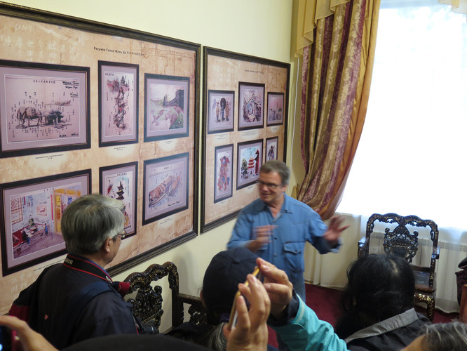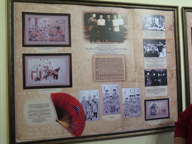 一层的一个房间,有关溥仪的展览,一位俄罗斯人正在用中文讲解。