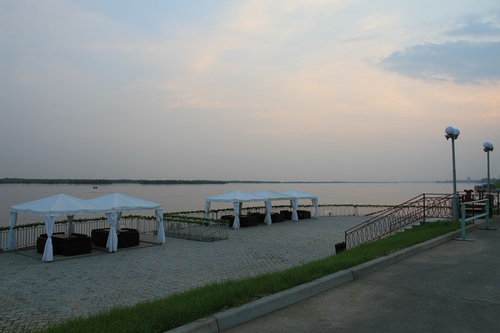 距皇室酒店不远处,树丛廊棚下有一处临江的咖啡座,我们踱步过去,找个位置闲坐。